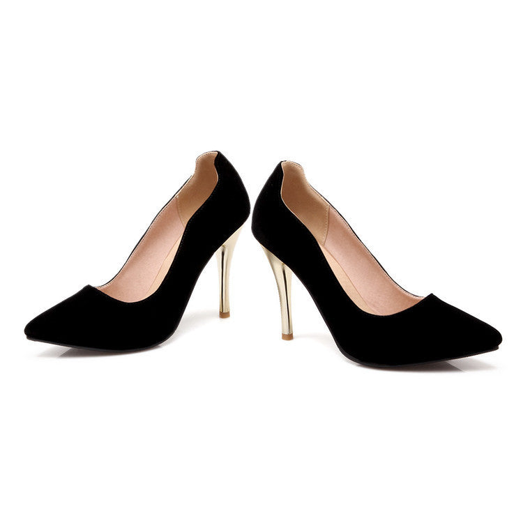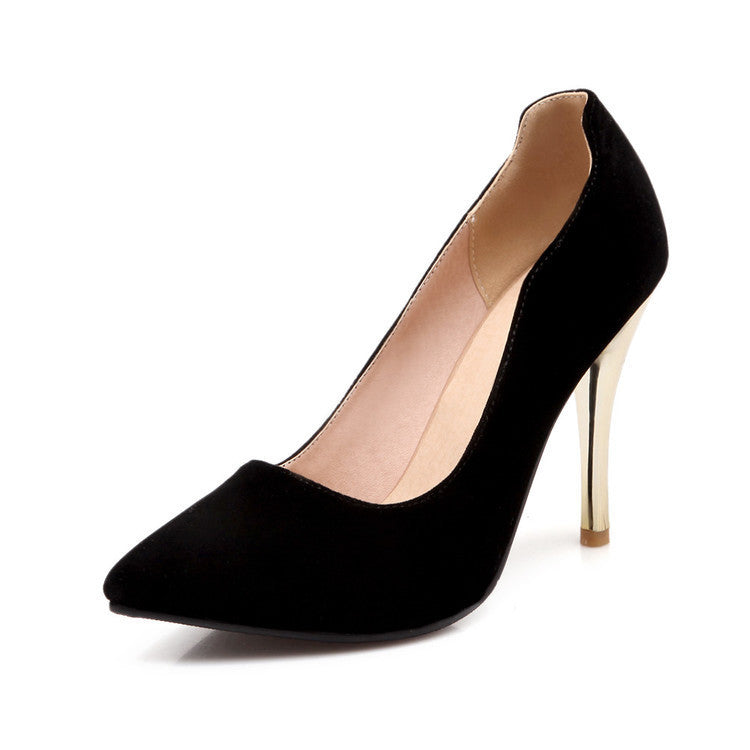 Sobriété chic & talon doré Ces escarpins noirs à bout pointu incarnent l’élégance intemporelle avec une touche de luxe doré. Leur design minimaliste sublime toutes vos tenues avec raffinement